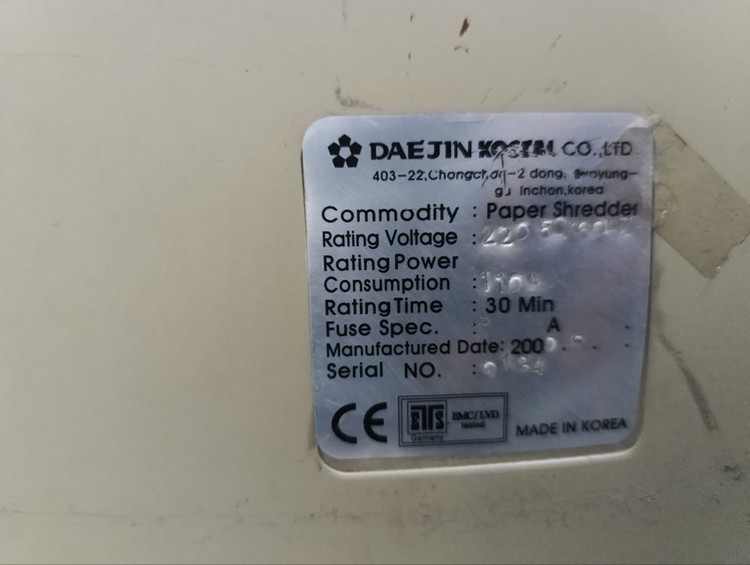 دستگاه کاغذ خرد کن مارک daejin مدل p-220mc مناسب برای استفاده روزمره در منزل یا اداره جات